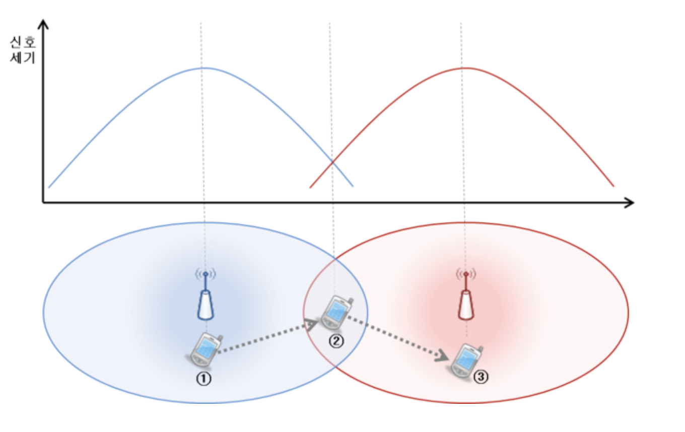 기지국은 띄엄띄엄 세워져있는데, 하나의 기지국이랑 나랑 통신하는 거고 -> 그러다가 기지국의 커버리지를 벗어나면?