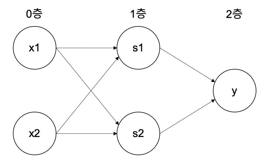 이처럼 층이 여러 개인 퍼셉트론을 다층 퍼셉트론이라 하며, XOR은 2층 퍼셉트론으로 표현이 가능하다.