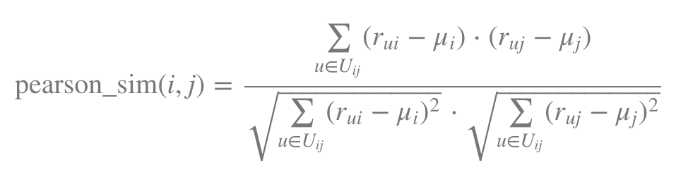 - 상품 i와 상품 j간의 Pearson Similarity