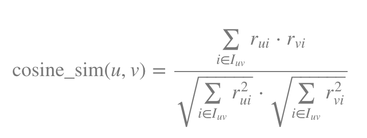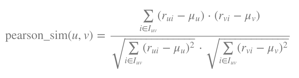 - Iuv는 사용자 u와 사용자 v 모두에 의해 평가된 상품의 집합