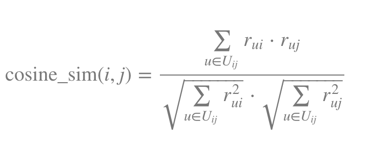 - Uij는 상품 i와 상품 j 모두를 평가한 사용자의 집합이고 |Uij|는 상품 i와 상품 j 모두를 평가한 사용자의 수