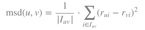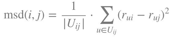 - 동일한 user에 대해 점수가 매겨진 item 사이의 유사도- Mean Squared Difference Similarity