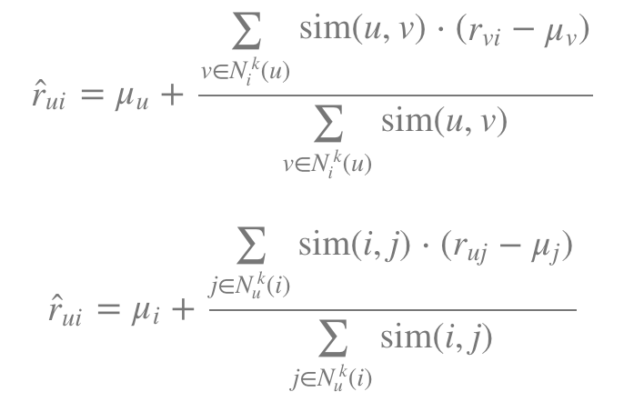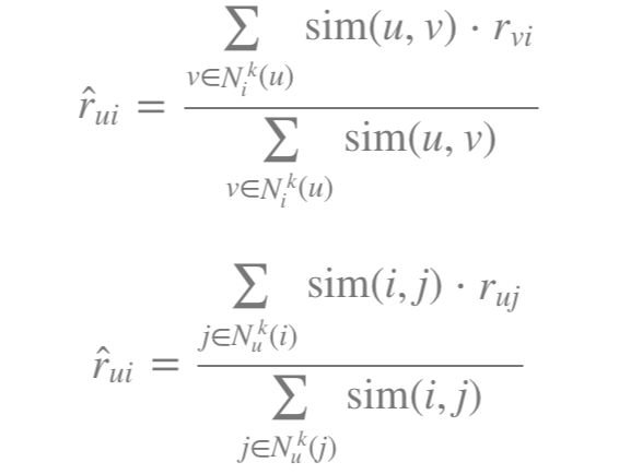 - 사용자들 간의 유사도를 이용하여 모든 아이템에 대한 예측 평점을 계산하고, 높은 값을 갖는 상위 N개의 추천 목록 생성