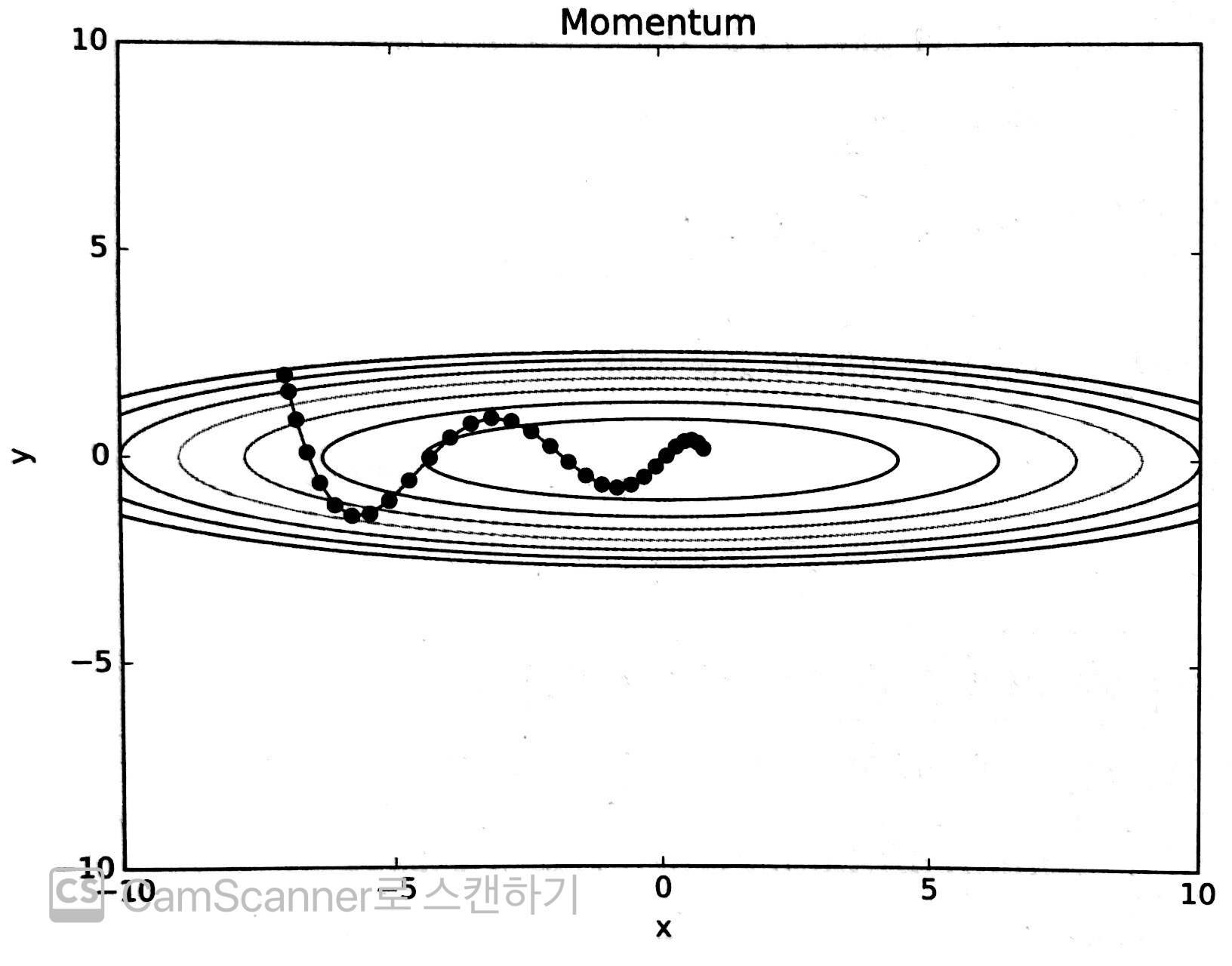 SGD와 비교했을 때 '지그재그 정도'가 덜한 것을 알 수 있다.
