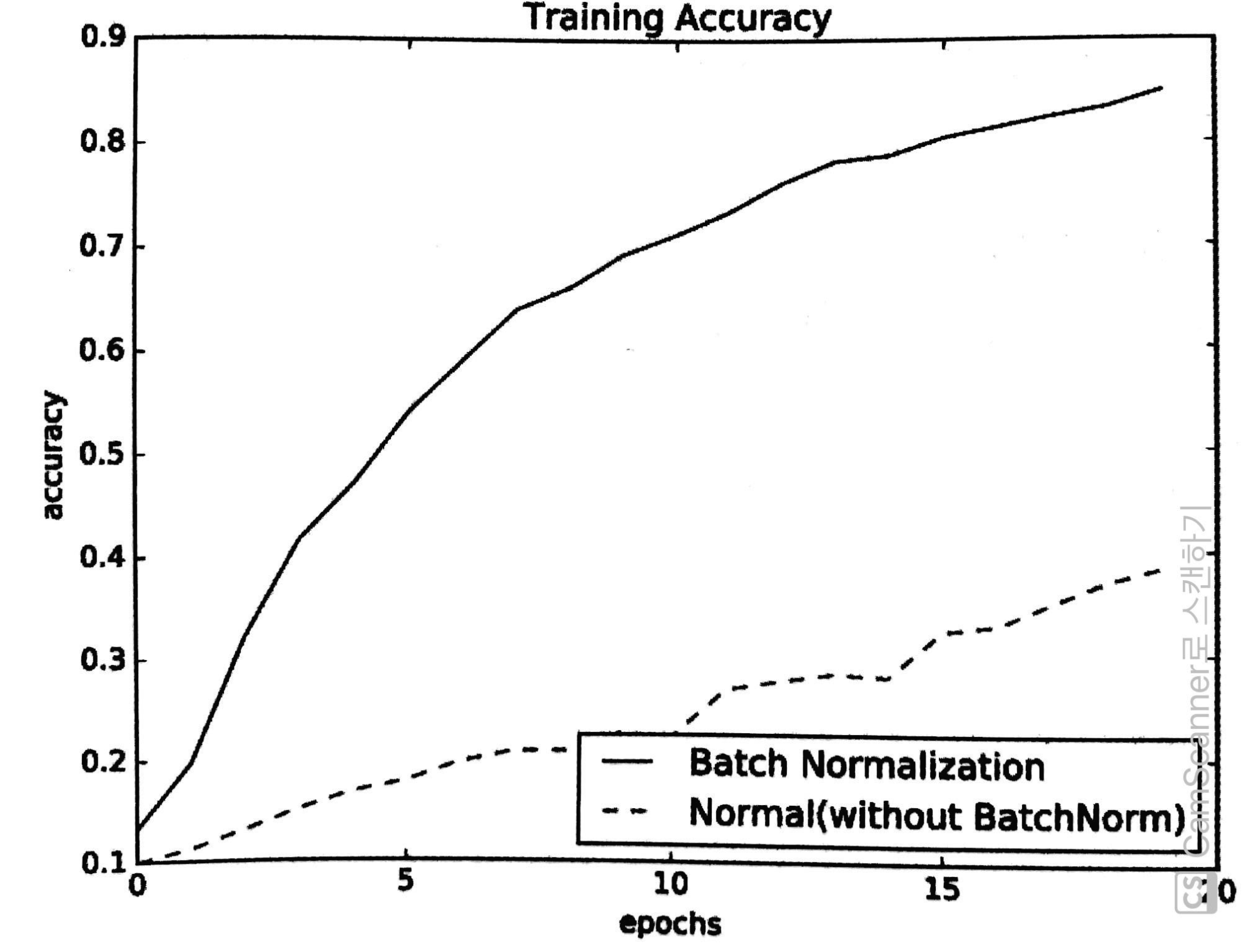 그림 5 [그림 5]와 같이 배치 정규화가 학습을 빨리 진전시키고 있다.