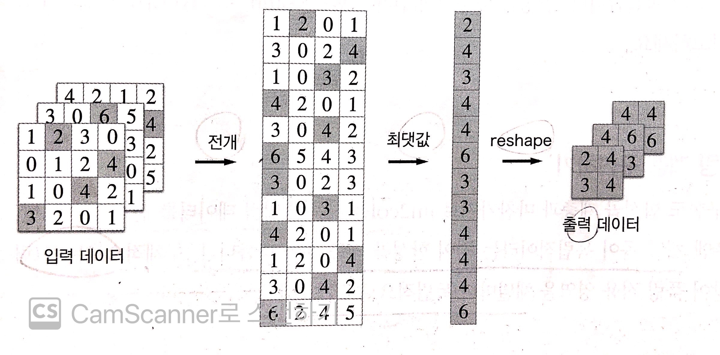 그림 5 위와 같이 전개한 후, 전개한 행렬에서 행별로 최댓값을 구하고 적절한 형상으로 성형하기만 하면 된다. [그림 6]