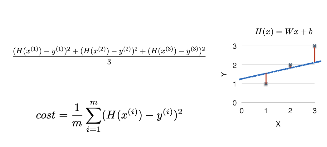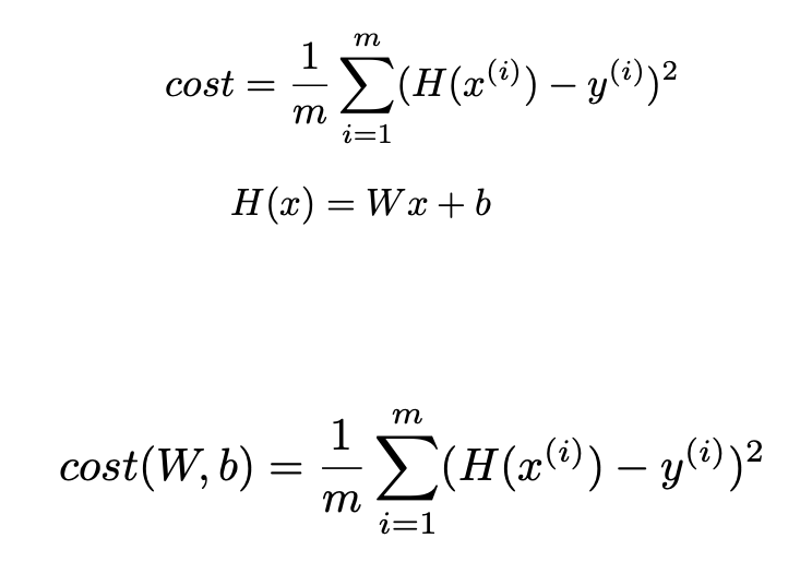 m : 데이터의 개수 - Linear Hypothesis가 얼마나 틀렸나 확인할 때 계산할 수 있는 함수 = Cost function